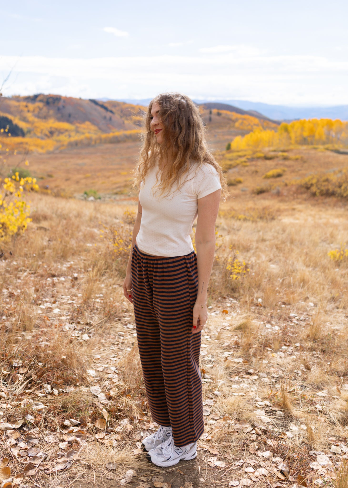fabric is cotton and polyester with lots of stretch. paired with the lover girl top.