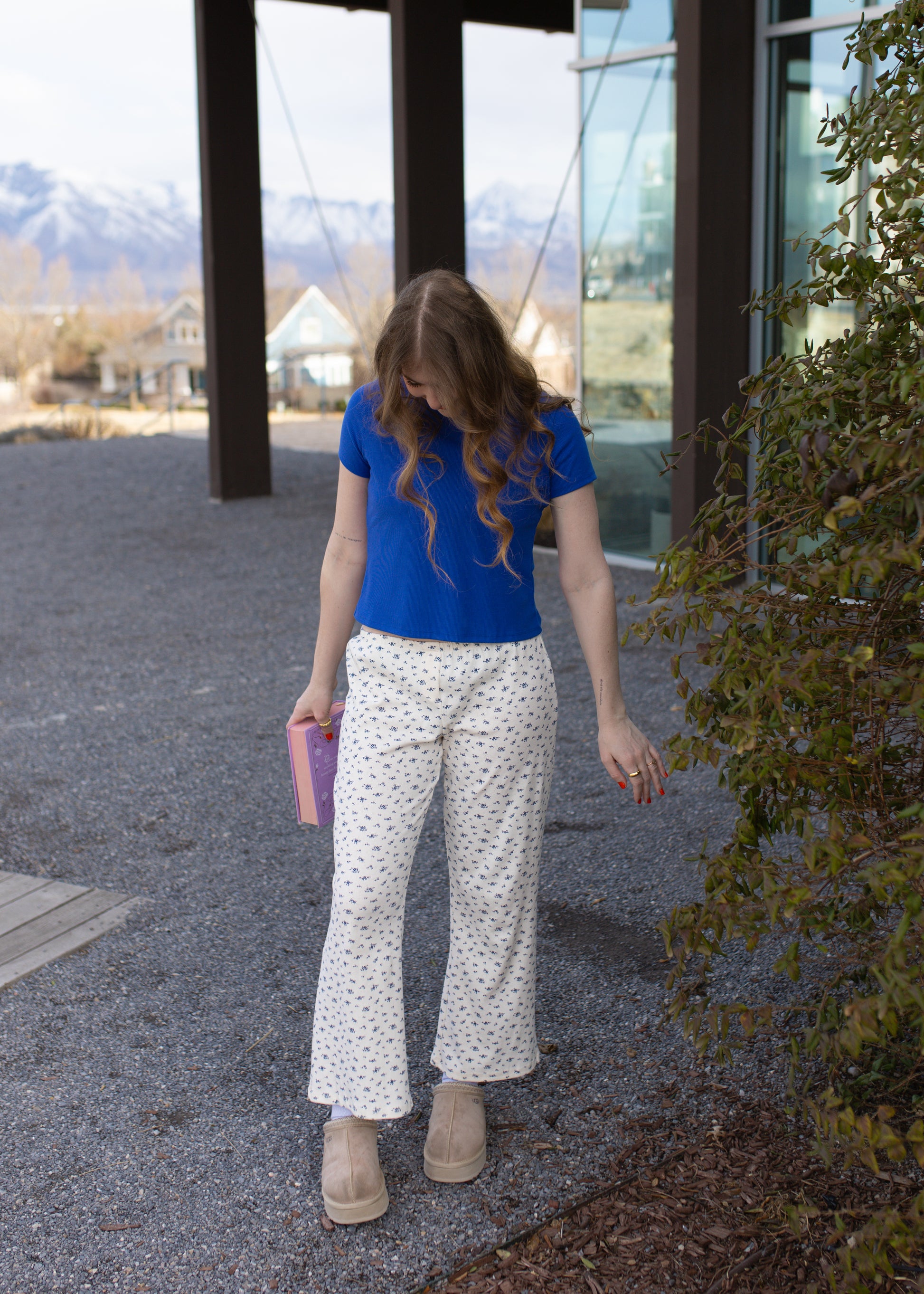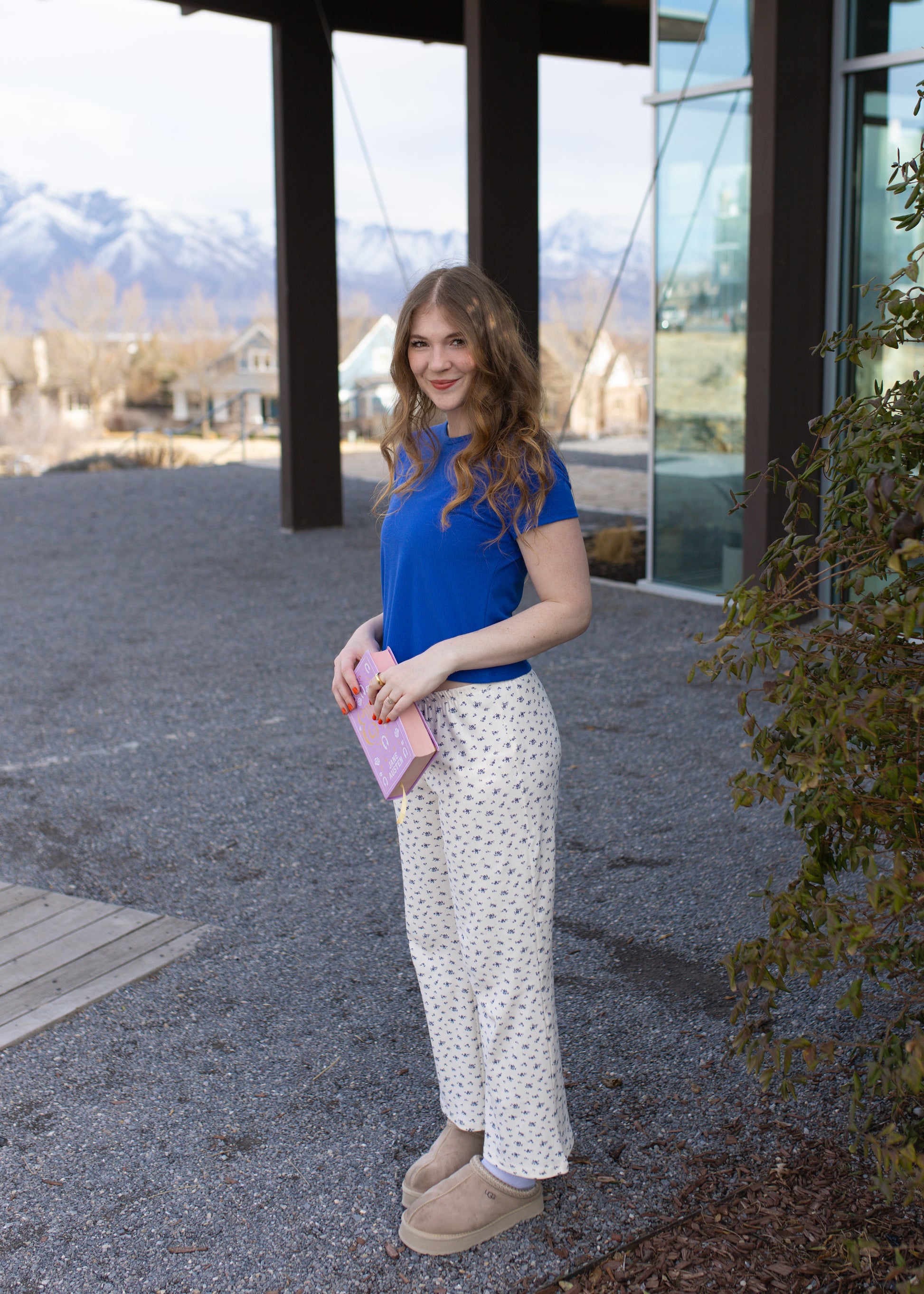 MEET MY NEW GO-TO READING OUTFIT!! These pointelle pants are so darling and so comfortable. These have a low rise fit and are not see-through at all.