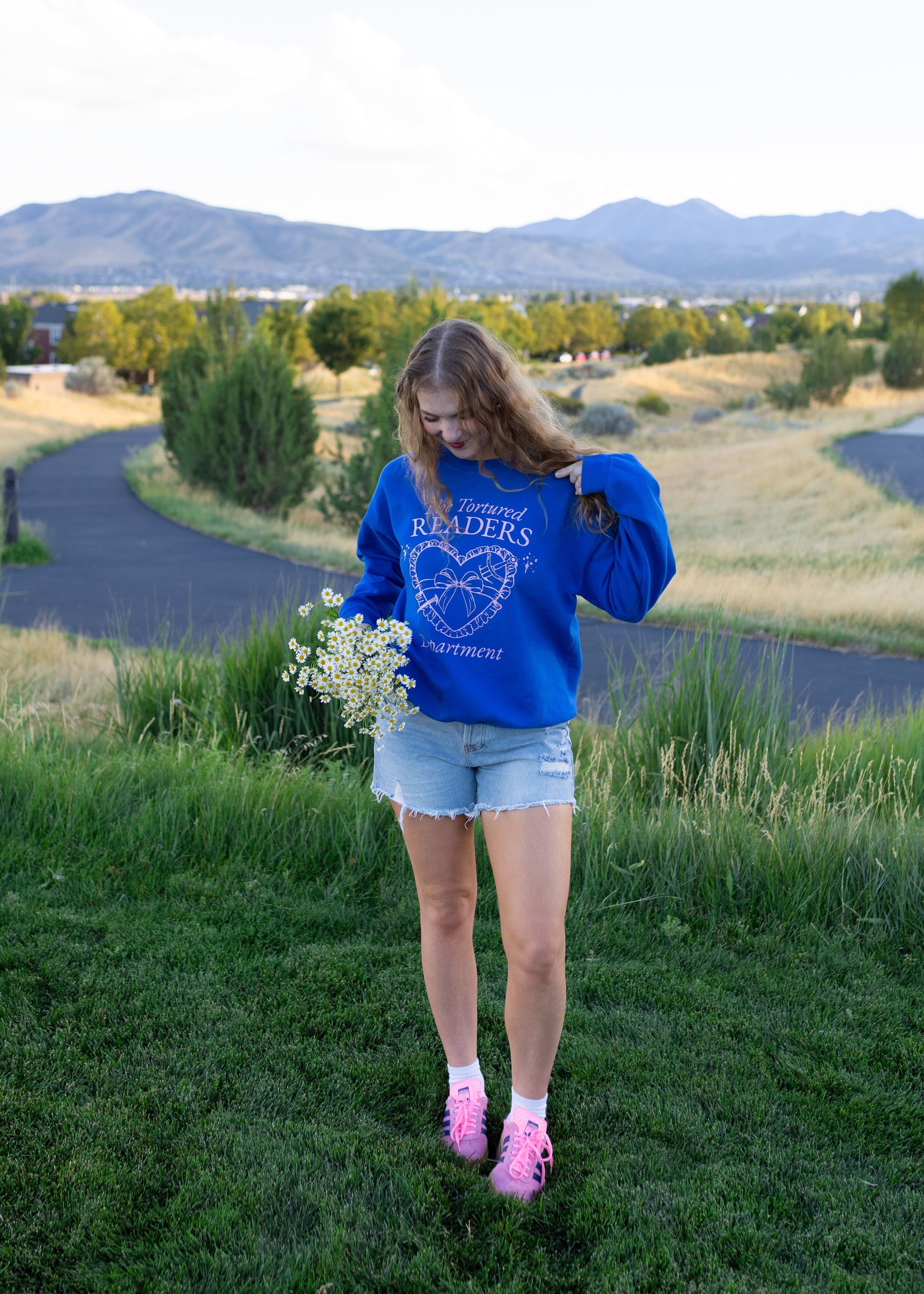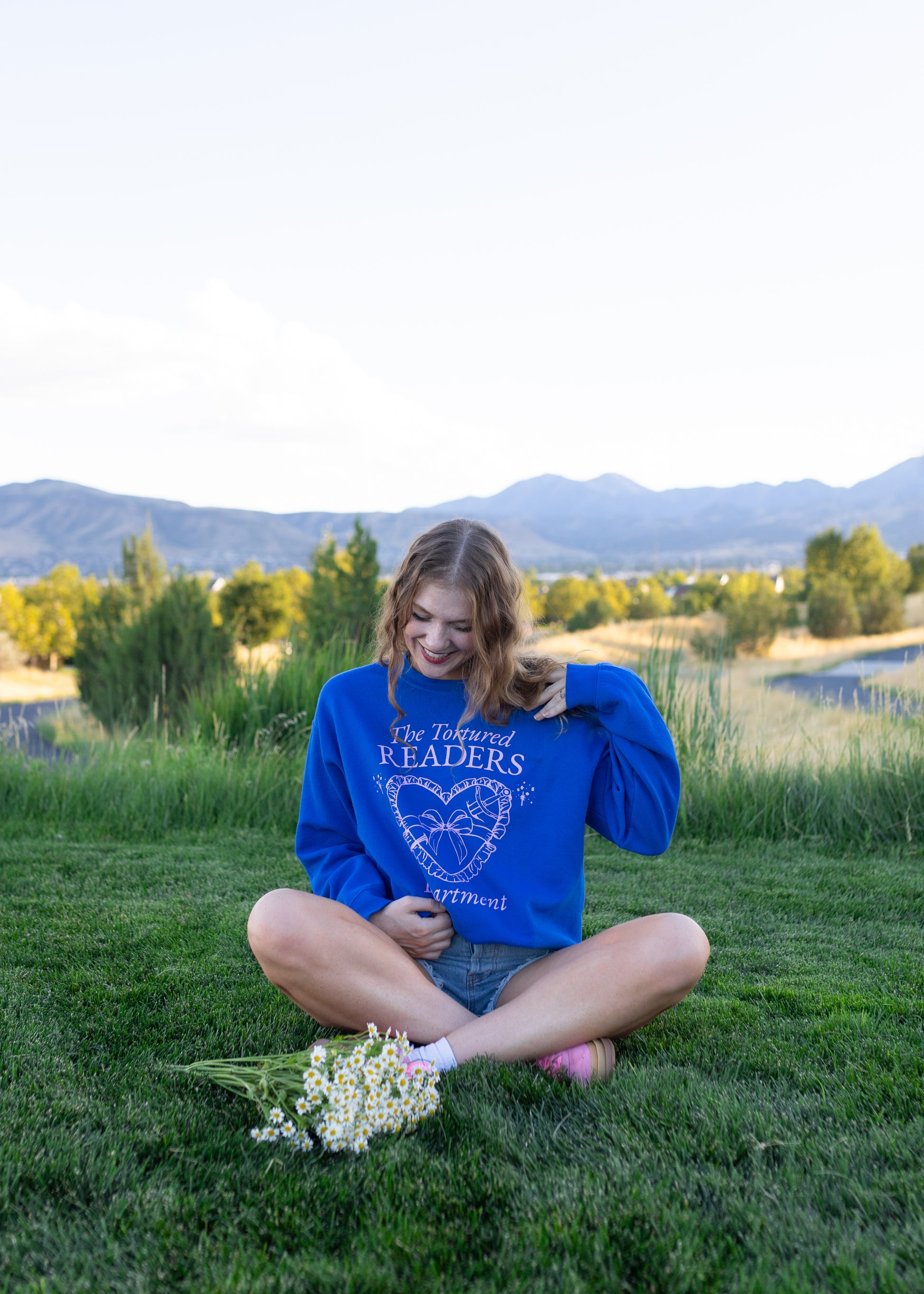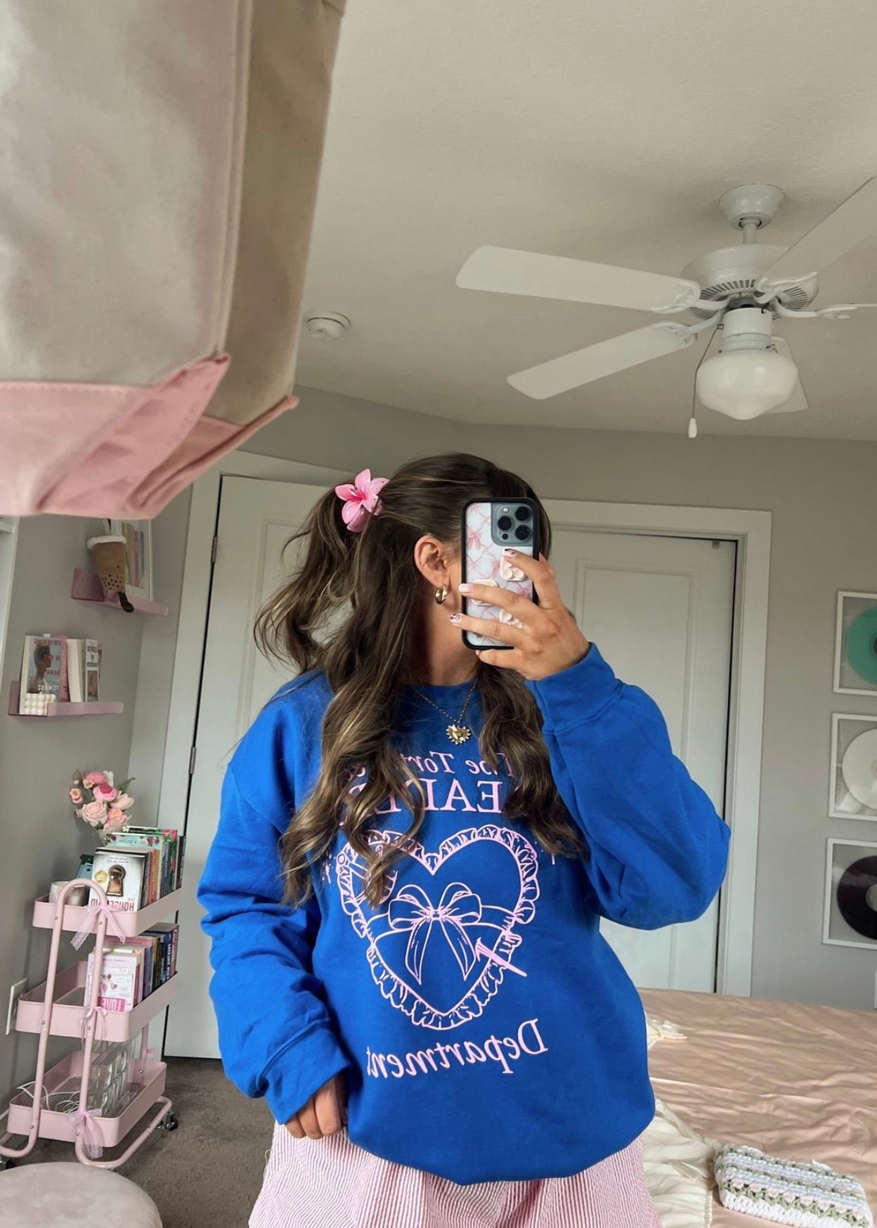 I have been itching to use this color combo for a design for ages and I KNEW this was the time. Pink & blue forever!! This is THE crewneck for snuggling up and listening to TTPD this spring and summer.
