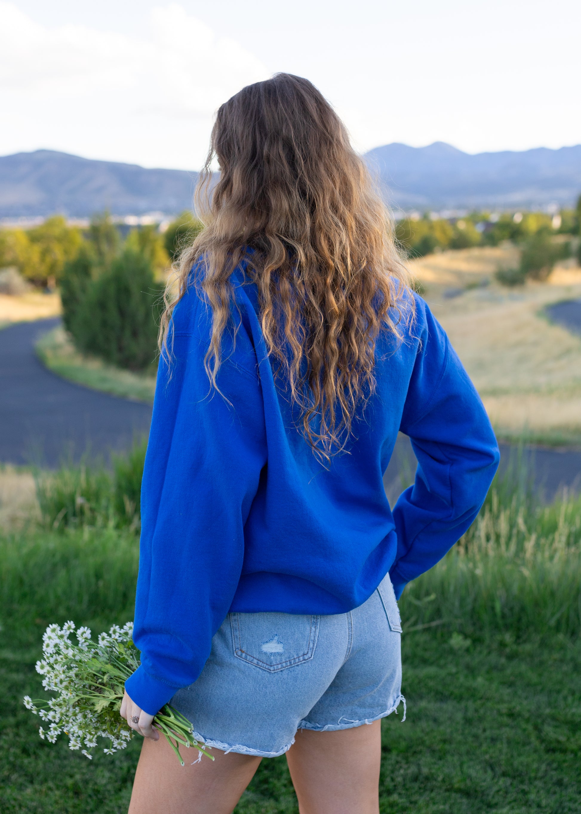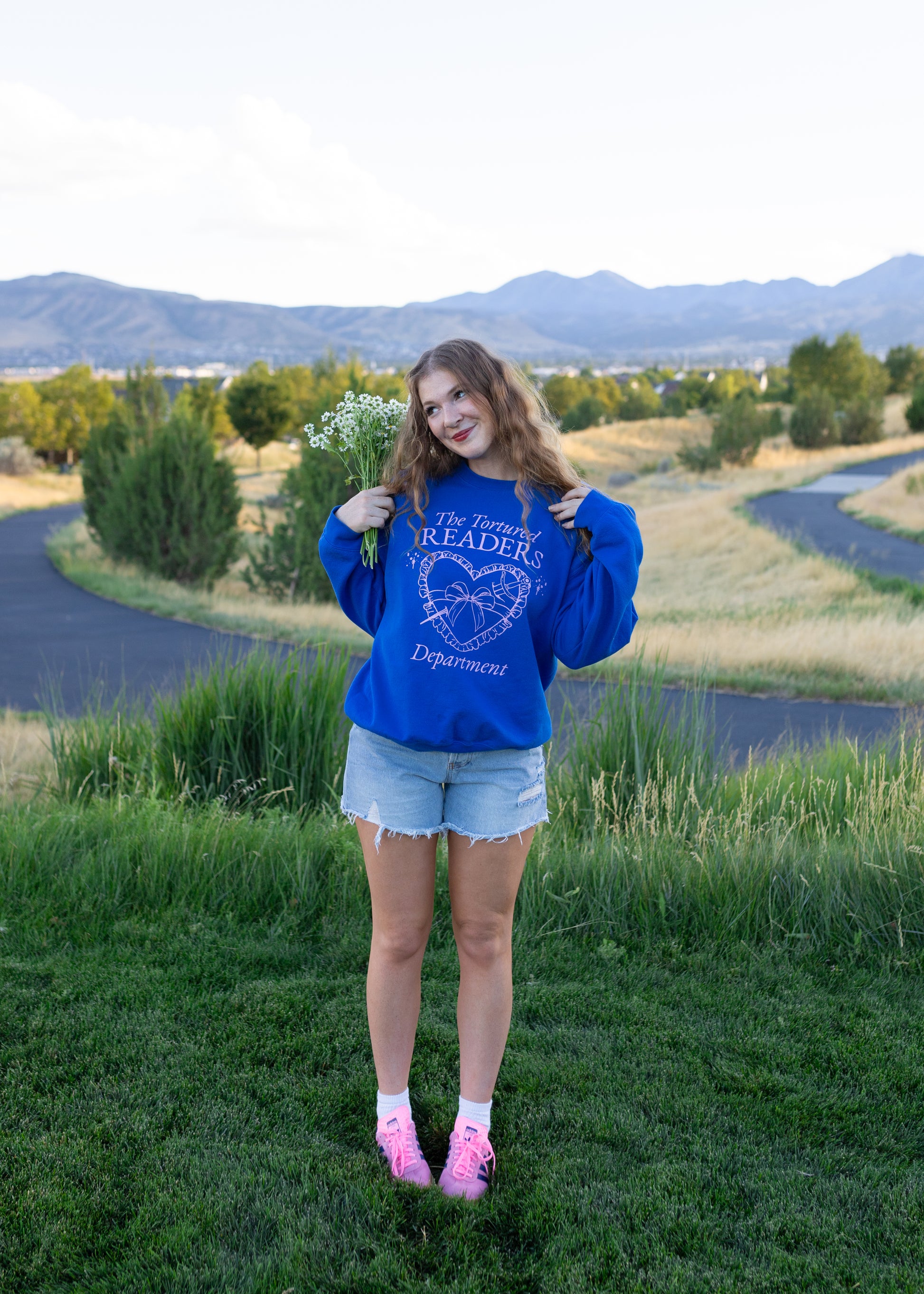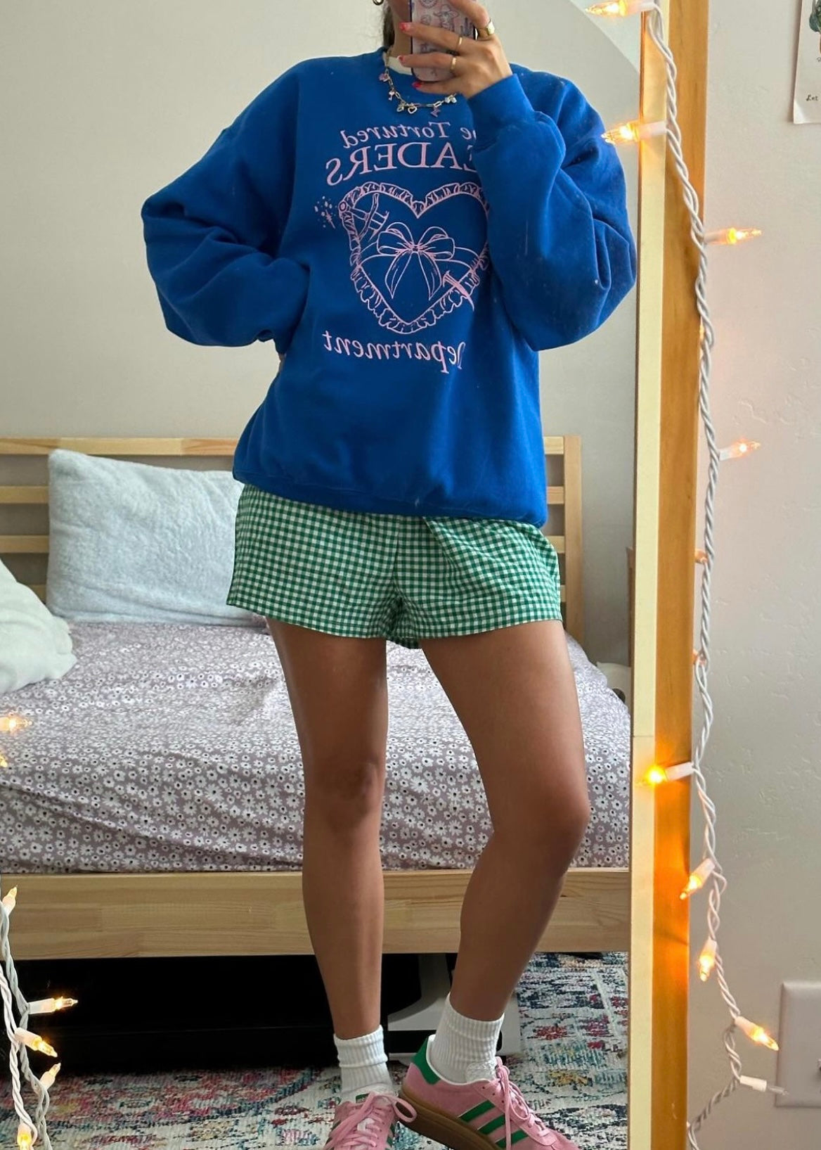 I have been itching to use this color combo for a design for ages and I KNEW this was the time. Pink & blue forever!! This is THE crewneck for snuggling up and listening to TTPD this spring and summer.